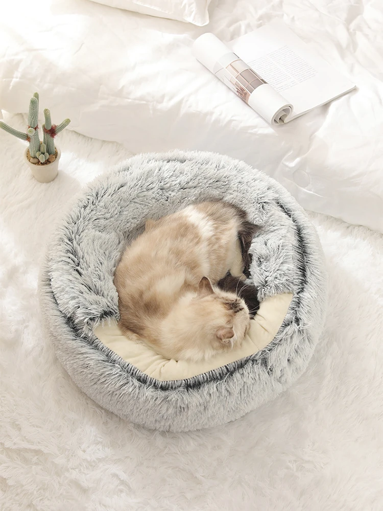 Ciepłe miękkie pluszowe łóżko dla kota z pokrowcem – Okrągłe gniazdo