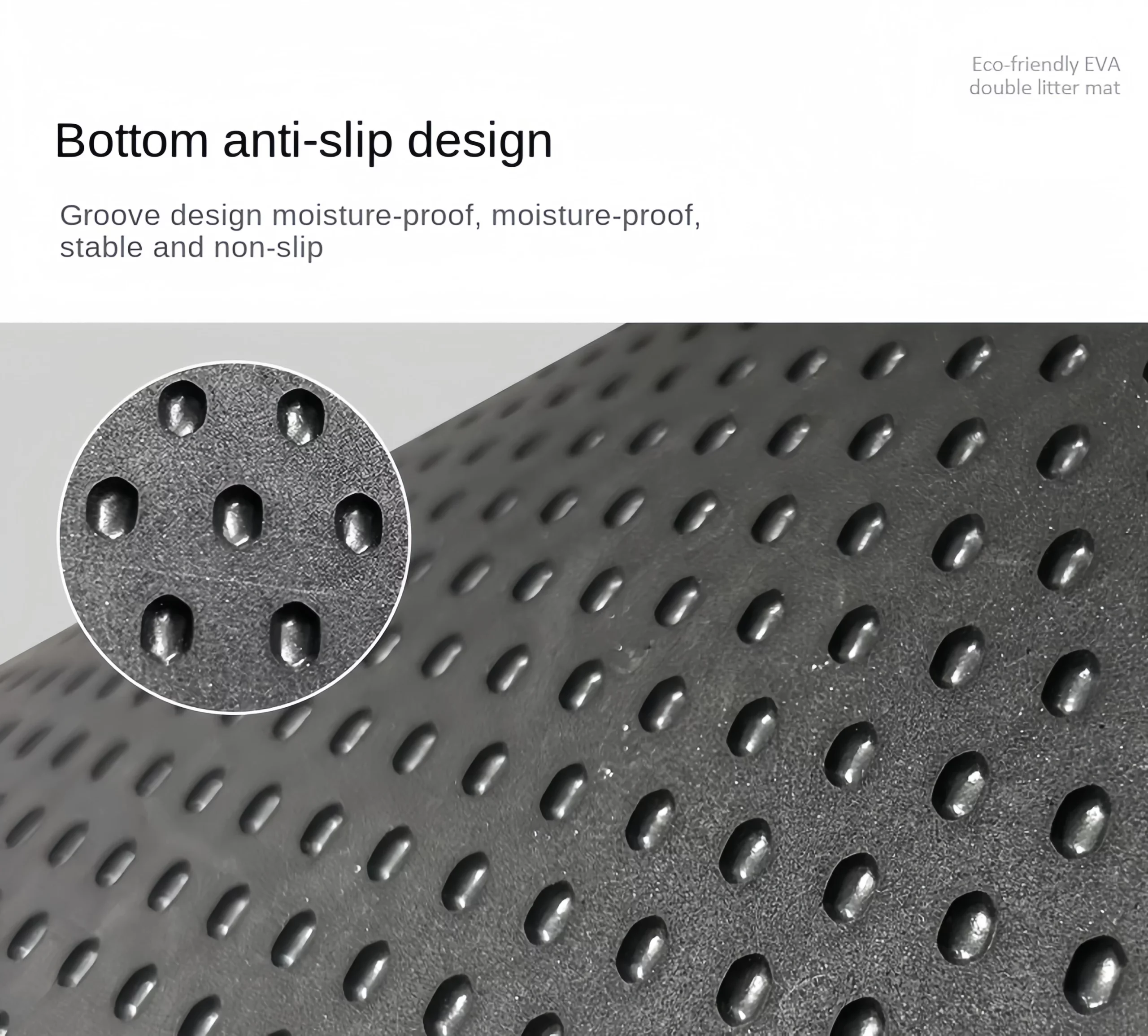 - Wodoodporna i antypoślizgowa podstawa – dolna warstwa chroni podłogę przed wilgocią i zapobiega przesuwaniu się maty.