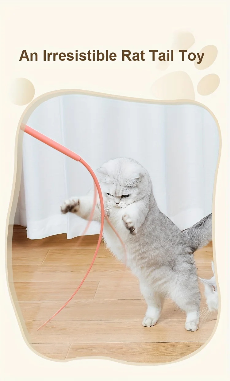 Ten produkt to interaktywna wędka dla kota z elastycznym „mysim ogonem”, idealna do wspólnej zabawy i pobudzania instynktów łowieckich kota.